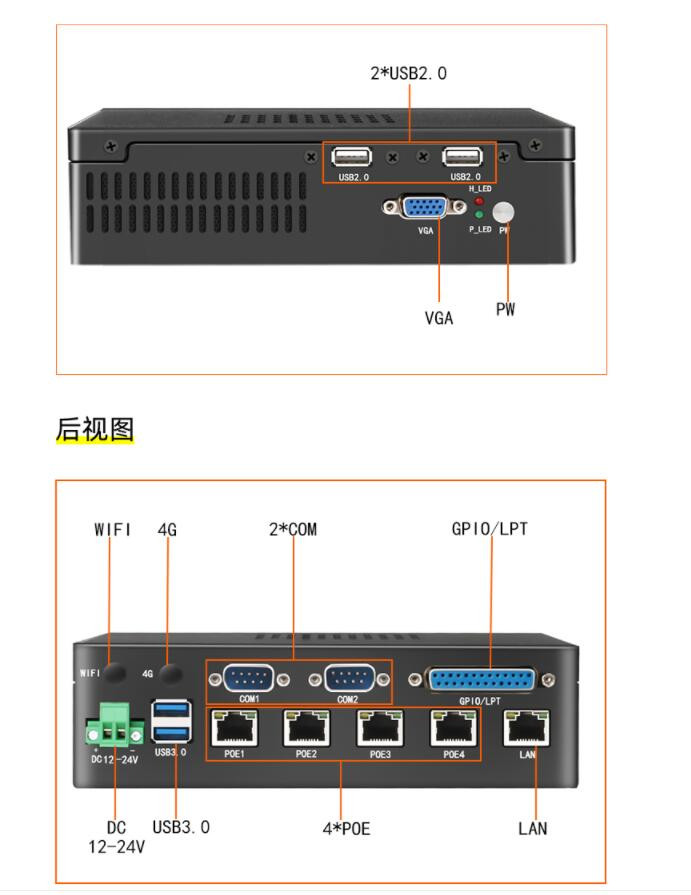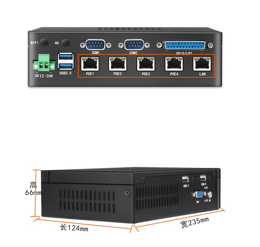 2)5xIntel I211AT RJ45 LANs;LAN1-LAN4:Can support POE